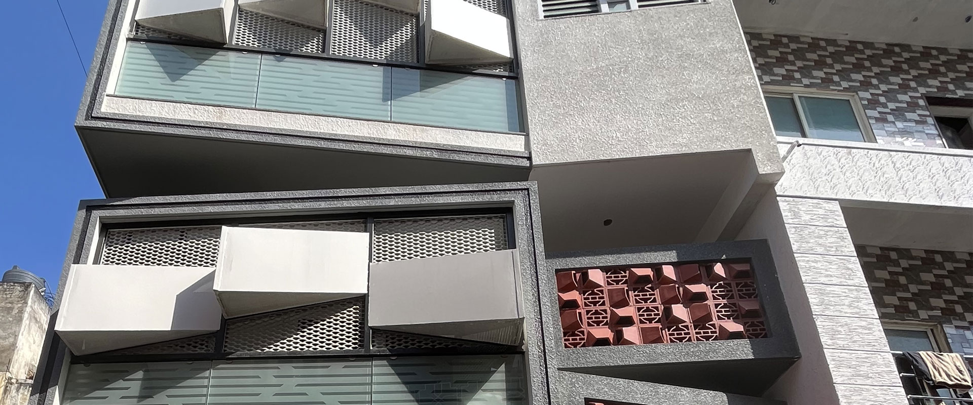Cubist Residence is a bold expression of geometry and modern living. The façade is composed of clean, angular forms and layered volumes that play with depth and shadow, creating a striking cubist-inspired composition.