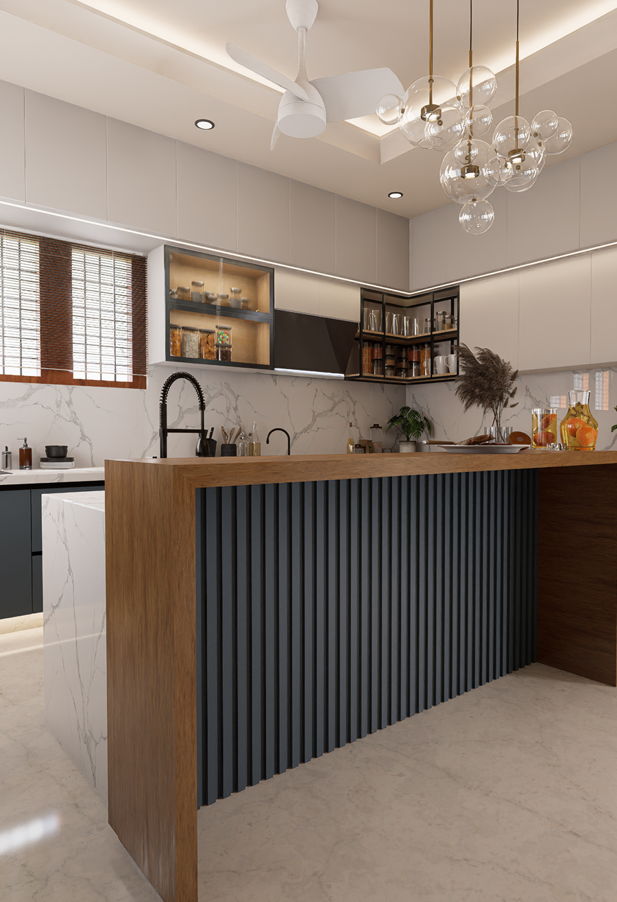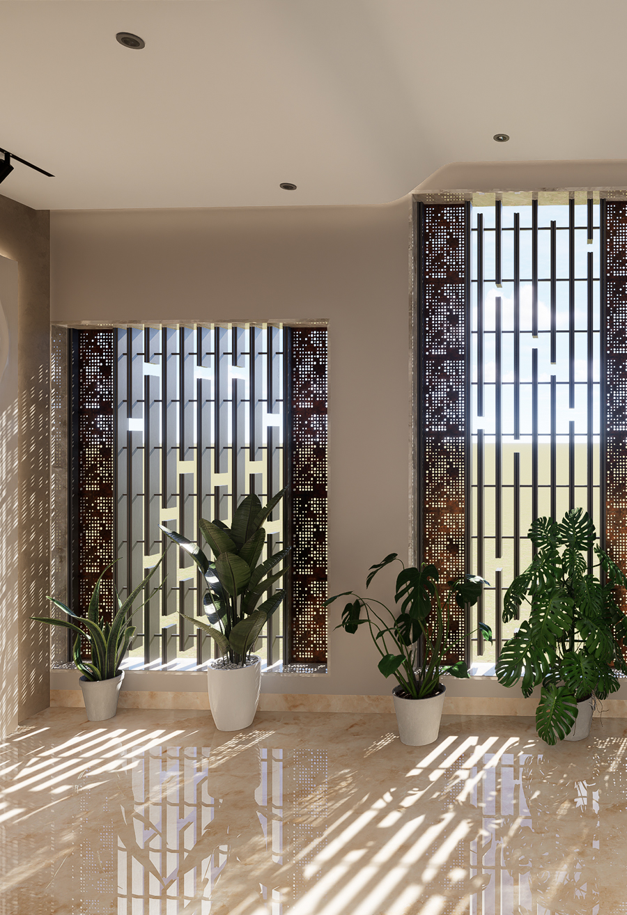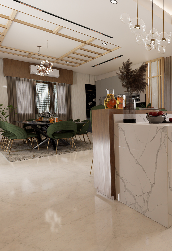 Kota Haven is a home where contemporary living meets the warmth of tradition. The client’s vision was clear: a modern house that still carried the soul of timeless design. To achieve this, the elevation embraces exposed brick, lending the façade a sense of honesty and permanence, while keeping the lines clean and contemporary.