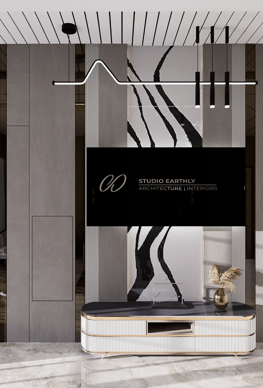 The living area becomes a central canvas and An under-staircase landscape adds freshness and a touch of nature indoors. The design thrives on details that spark conversations and emotions.